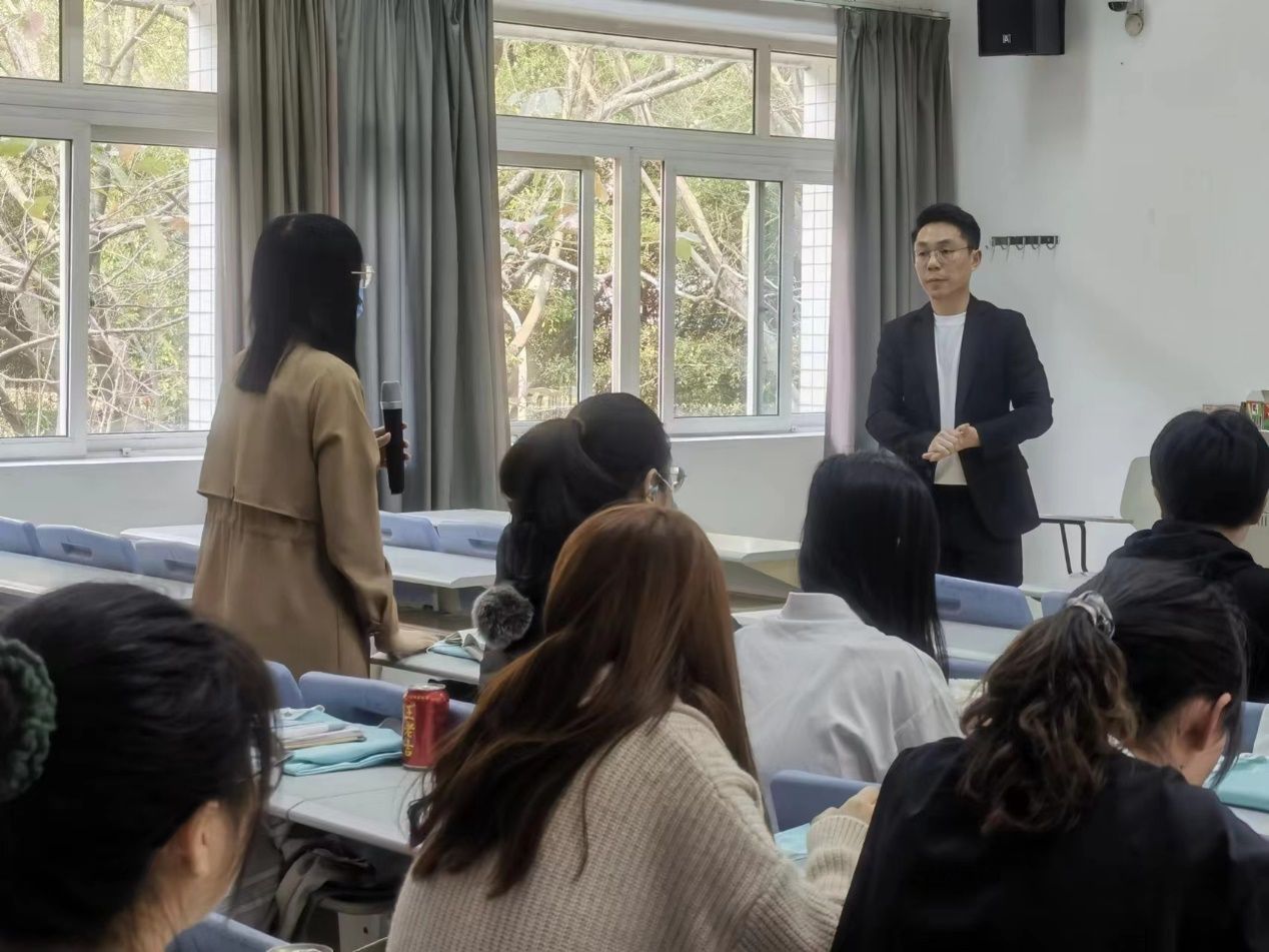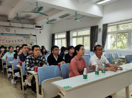 宣讲会开始前,陈书记带领辅导员老师与企业代表进行了简单的交流,双方希望继续加强合作,为学生提供更多的就业岗位。随后,陈书记上台讲话,表达了对广州医药股份有限公司的热烈欢迎,同时勉励同学们树立积极的就业观念,努力提升自身综合素质,并希望同学们抓住机会,顺利拿到offer。