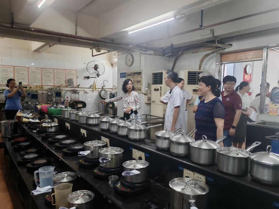 在清远市中医院药学部负责人及校友们的热情接待与细致引导下,师生代表们先后参观了中药房的药品处方调配区、制剂中心、中药代煎中心等核心区域。负责人结合药房日常运作实例,细致讲解了药品从采购入库、质量验收、分类储存,到依据临床处方精准调配、核对分发的全流程操作规范。参观过程中,师生们专注聆听,并不时就药品采购渠道审核、特殊药品管理流程、临床用药需求对接等专业问题,与药学部工作人员展开深入交流,现场学习氛围十分浓厚。