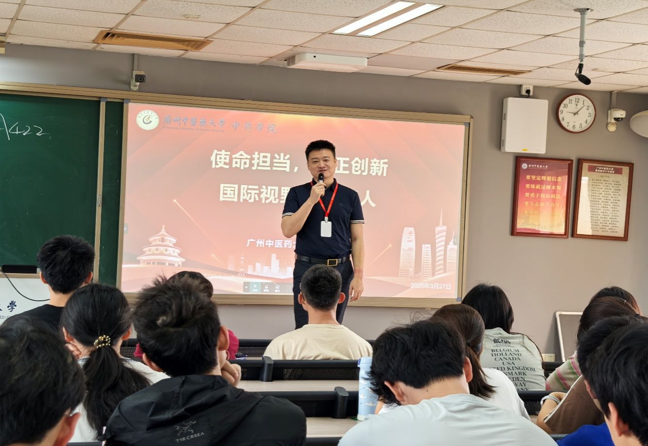 为深入学习宣讲习近平新时代中国特色社会主义思想,引导大学生树立正确的世界观、人生观和价值观,扣好“人生第一粒扣子”。3月27日上午,中药学院院长白云龙以“使命担当,守正创新,国际视野新中药人”为题,在大学城校区教学楼A506教室为2024级临床药学班同学讲授2025年春季学期“思政第一课”。